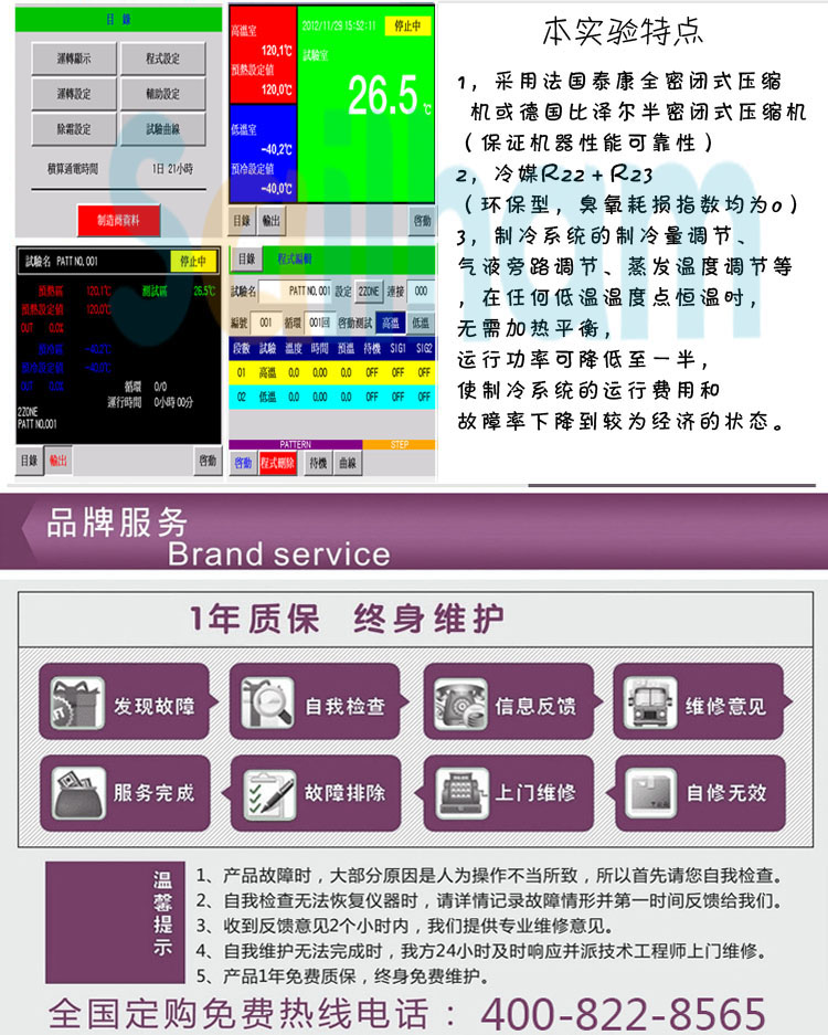 3.采用智能型自動轉換膨脹系統,根據負載自動調整冷媒流量+智能型電熱功率數據值(%)匹配升降溫(負載)自動模擬輸出功率數據輸出值.此設計比傳統設計可省電30%以上。